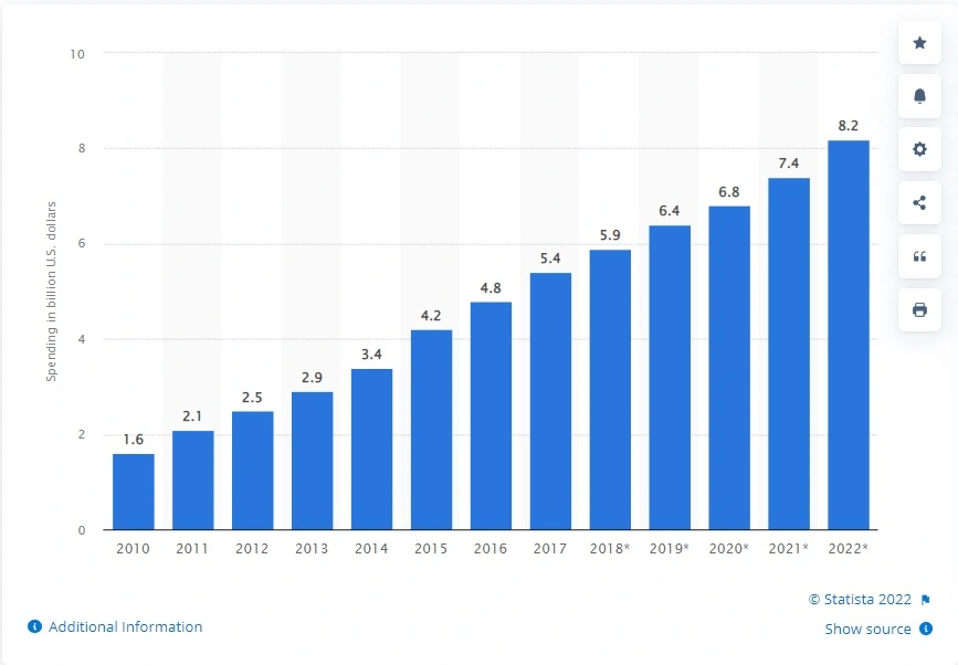 Geen wonder dat de affiliate marketingmarkt in de VS in 2022 $8,2 miljard bereikte, tegenover $5,4 miljard in 2017.